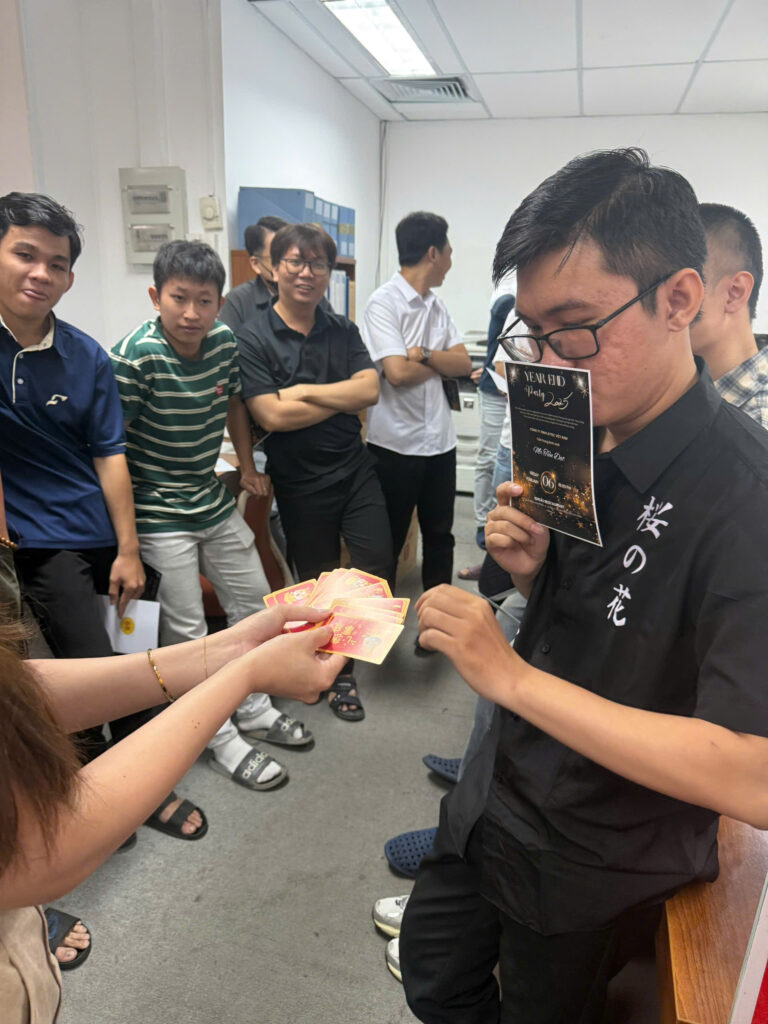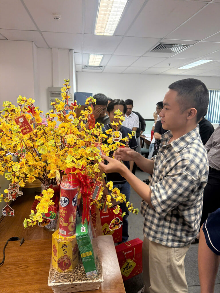 皆が幸運なテトギフトを楽しみにする中、特に社長からの新年のお年玉は、小さな喜びでありながら大きな意味を持ち、新しい一年を前向きで幸運な気持ちでスタートするきっかけとなりました。🎁💛